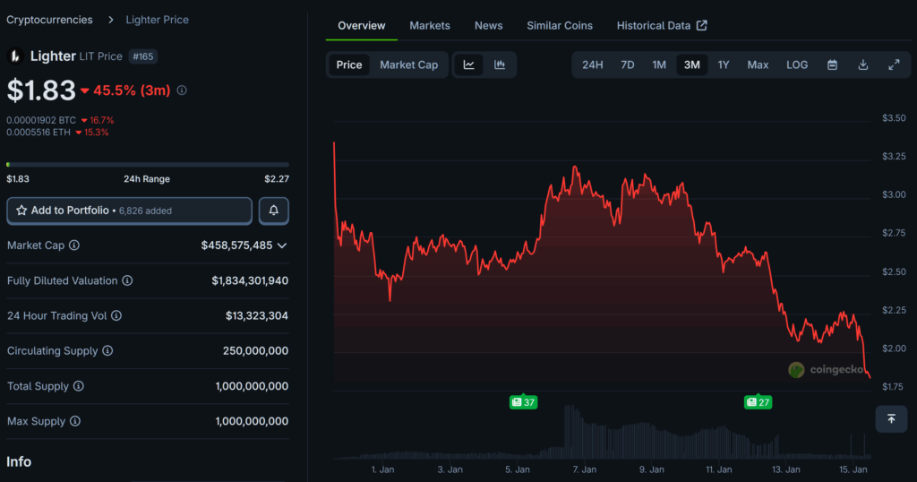 La stratégie d’acquisition de Lighter a été initialement calibrée pour maximiser l’extraction de valeur par le farming, une approche validée par la distribution massive de 25 % de la supply totale de jetons lors du TGE du 30 décembre 2025. Ce premier airdrop, ciblant les participants des saisons 1 et 2, a permis de créer une base d’utilisateurs importante tout en positionnant le protocole comme l’un des plus agressifs du secteur en termes d’incentives communautaires.