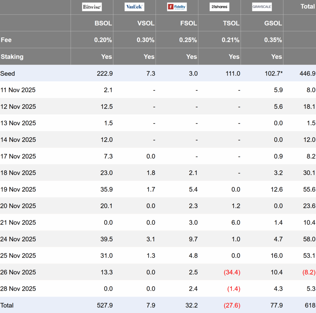 SOL : Les ETF Solana Spot vivent leur première journée rouge après des semaines parfaites
