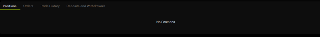 Vous pourrez ensuite suivre vos positions ouvertes depuis la section « Positions », consulter vos ordres en attente dans l’onglet « Orders », ainsi que retrouver l’historique complet de vos trades via la section « Trade History ».