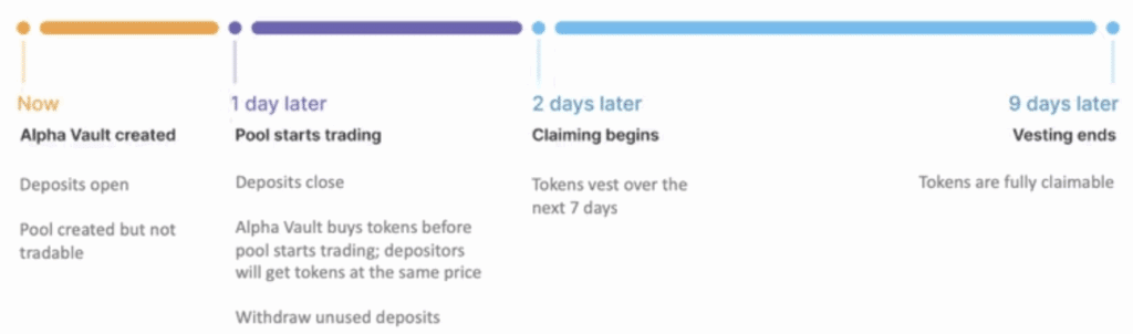 Meteora introduit un système de préachat contrôlé : les investisseurs peuvent déposer des fonds à l’avance dans un coffre (le vault), et l’allocation de tokens se fait selon un ordre équitable, sans possibilité d’intervention automatisée. Le prix de lancement est ainsi plus stable, et la distribution des tokens plus équilibrée.