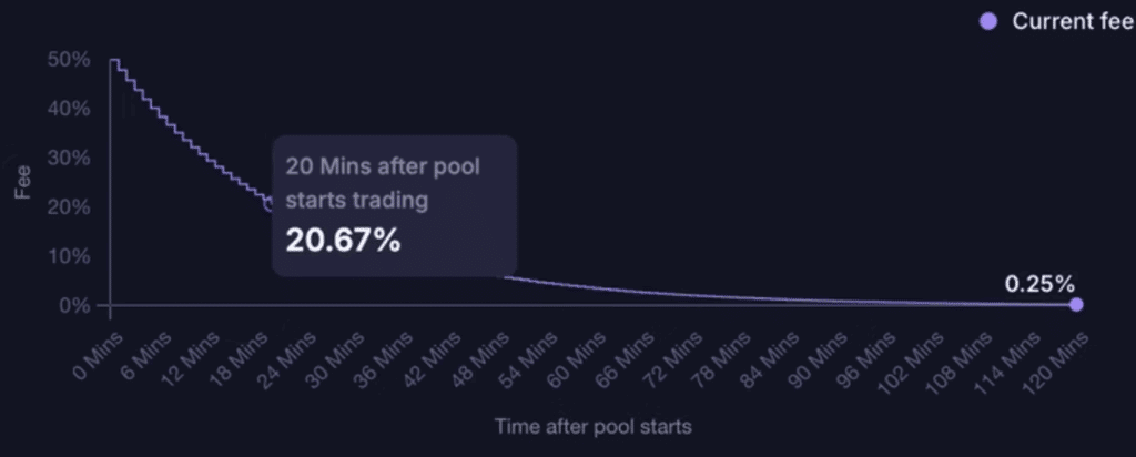 Le protocole a aussi mis en place une anti-sniper fee de 50% (dégressif) pendant les premières minutes suivant le lancement afin de limiter l’activité des bots et d’assurer un démarrage plus équitable.